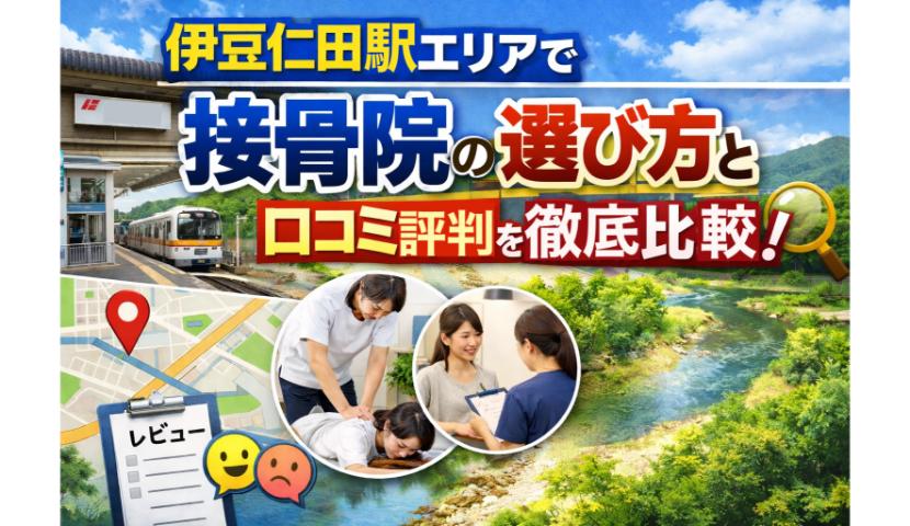 このように、伊豆仁田駅エリアの接骨院は多様な症状や目的に対応し、駅近の利便性と専門性の高さが特徴です。